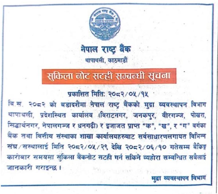 दशैंका लागि भदौं २९ गते पैसा साटन सकिने