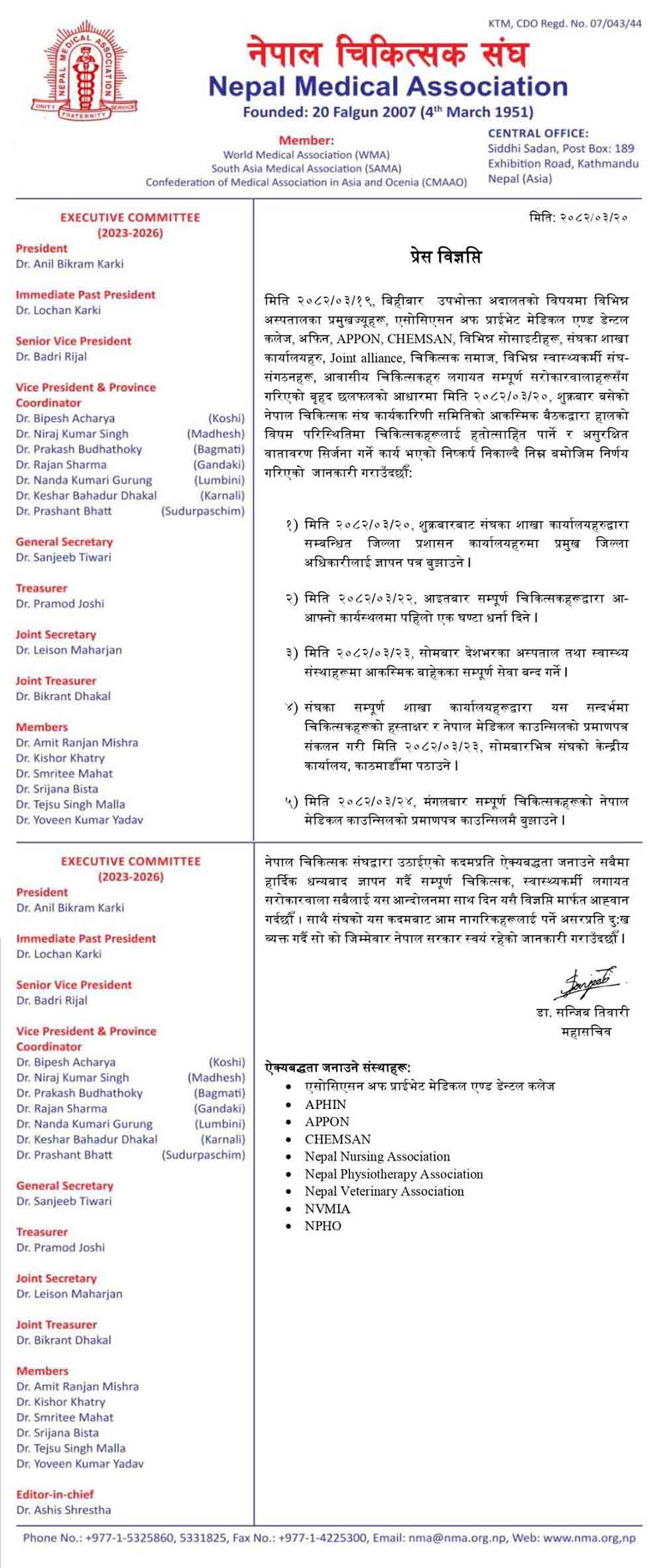 चिकित्सक संघको आन्दोलन: थप कार्यक्रम सार्वजनिक