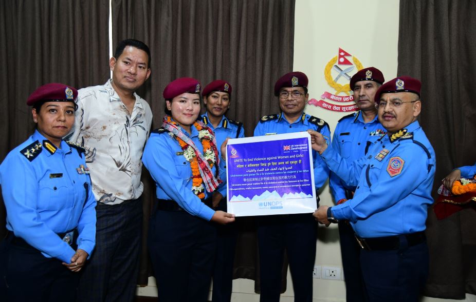 सगरमाथा आरोहणमा जान लागेको प्रहरी निरिक्षक शेर्पालाई ब्यानर हस्तान्तरण