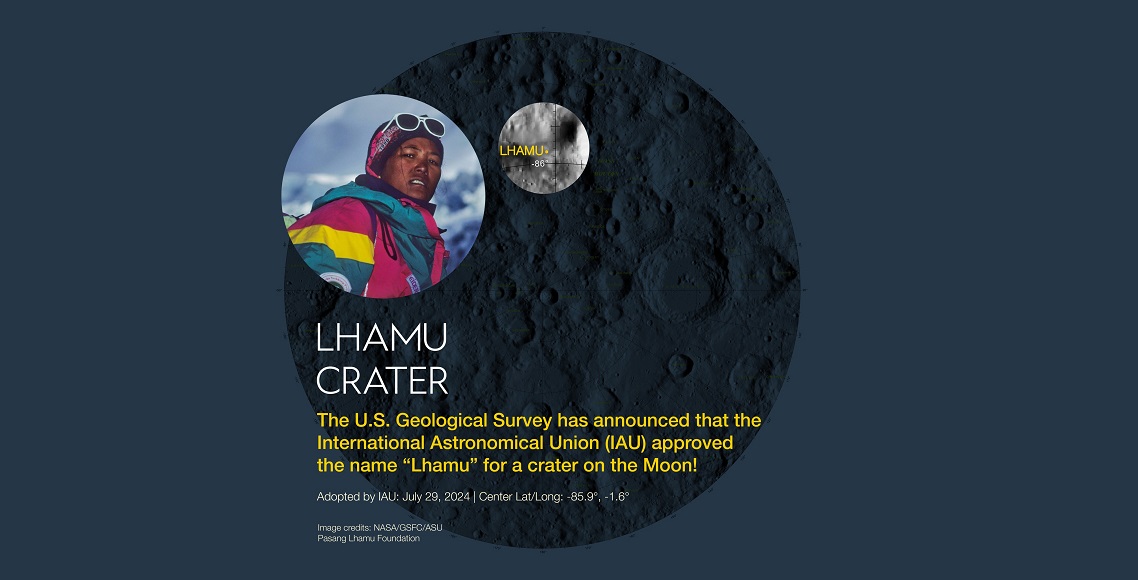 नेपाली प्रथम महिला पर्वतारोही पासाङ ल्हामु शेर्पाको नामबाट चन्द्रमाको एक भाग नामकरण