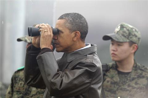 रकेट परिक्षण योजनाको विवादकाबीच अमेरिकी राष्ट्रपति ओबामाद्धारा दुई कोरिया विभाजन गर्ने गैर सैनिक क्षेत्रको भ्रमण