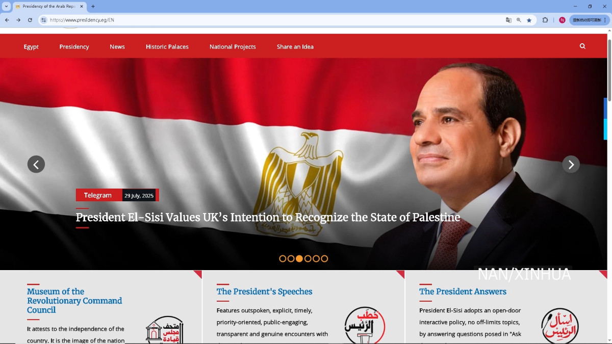 इजिप्टका राष्ट्रपतिद्वारा प्यालेस्टाइनलाई मान्यता दिने बेलायतको निर्णयको स्वागत