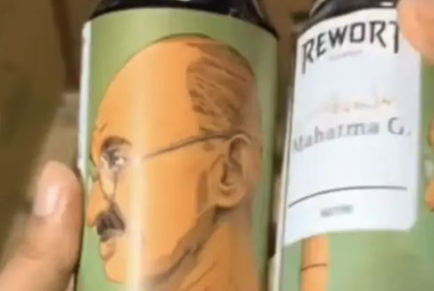 रुसको बियर कम्पनिको बोटलमा माहात्मा गान्धीको फोटो