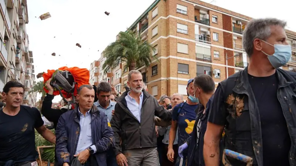 स्पेनको बाढीग्रस्त क्षेत्र पुगेका राजारानीको विरोध