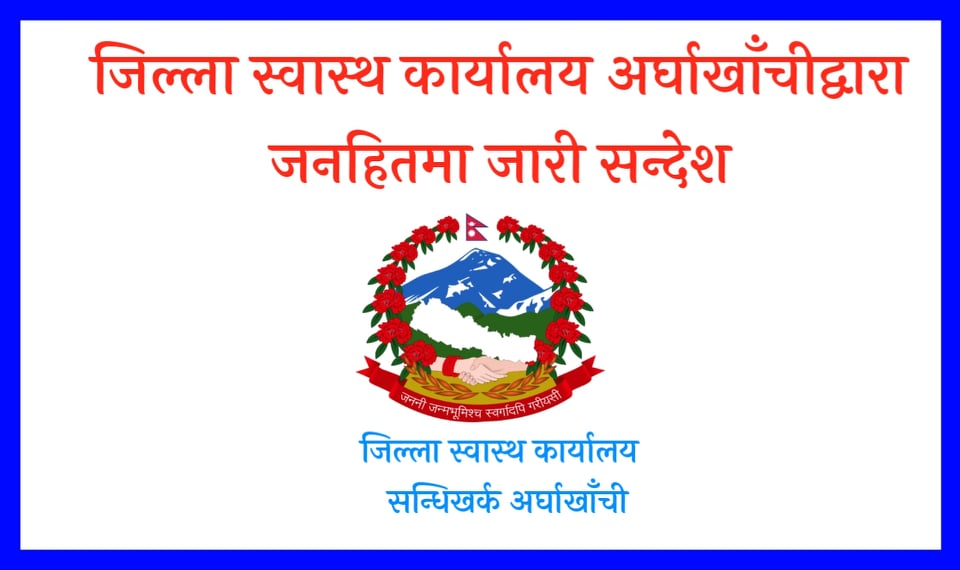 जिल्ला स्वास्थ्य कार्यालय अर्घाखाचीद्वारा जनहितमा जारी सन्देश !