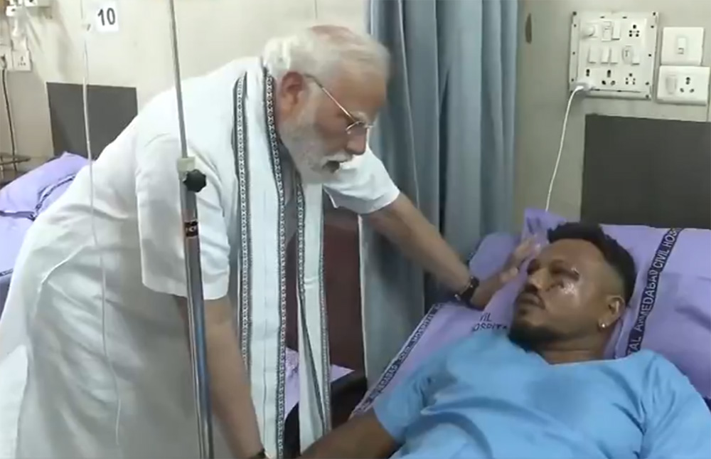 विमान दुर्घटनामा बचेका विश्वासलाई मोदीले भेटे