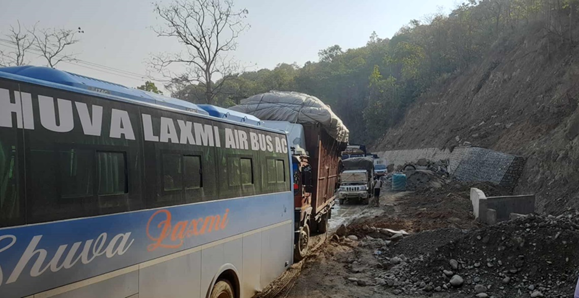 वर्षाले सडक हिलाम्मे : दाउन्नेमा यातायात अवरुद्ध, यात्रुलाई सास्ती