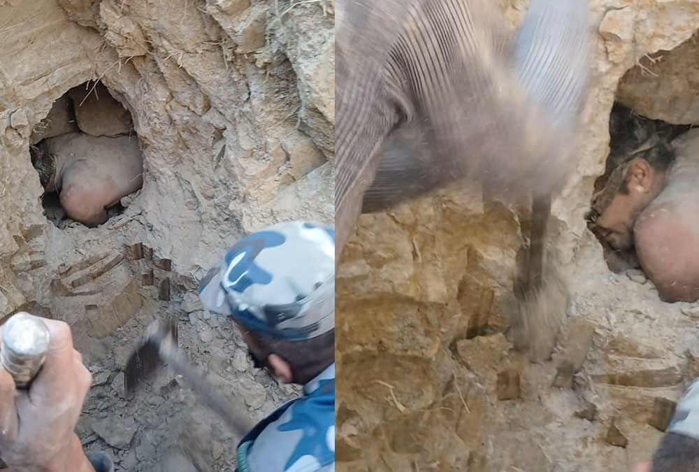 दुम्सी मार्ने क्रममा प्वालमा अड्किएका पुरुषको सकुशल उद्धार