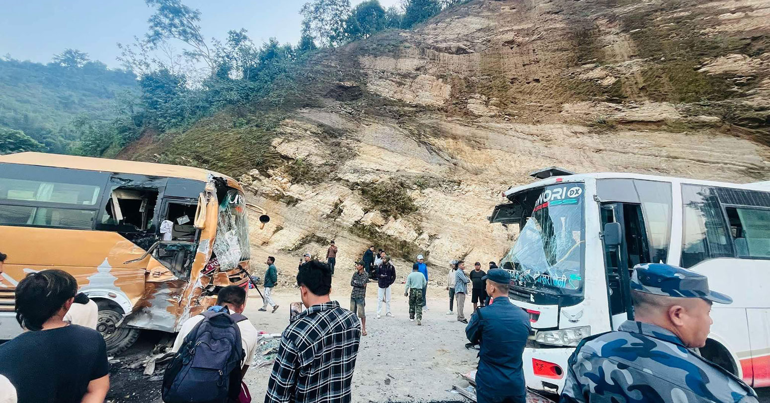 तनहुँमा दुई बस ठोक्किँदा एकको मृत्यु, ३० जना घाइते