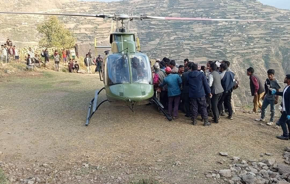 कालिकोट जिप दुर्घटनाका घाइतेलाई सेनाको हेलिकप्टरबाट सुर्खेत ल्याइयो