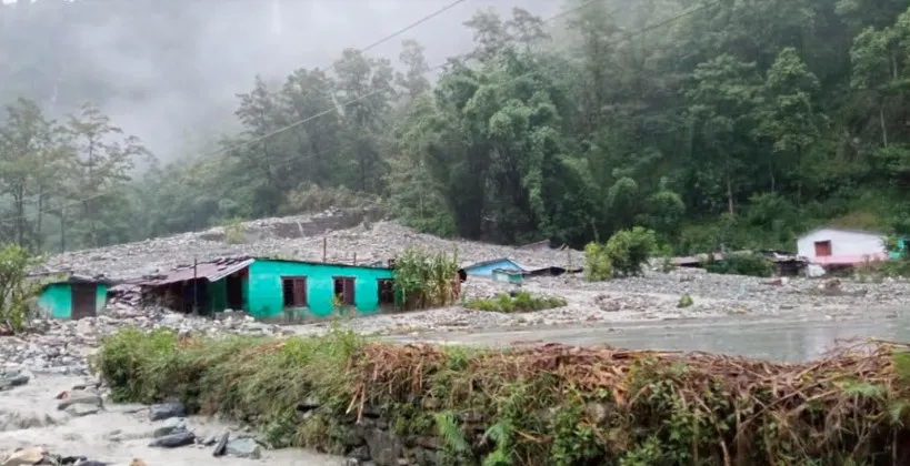 अविरल वर्षा: पर्वतमा पहिरोले ६ घर पुरिए, पन्ध्र परिवार विस्थापित