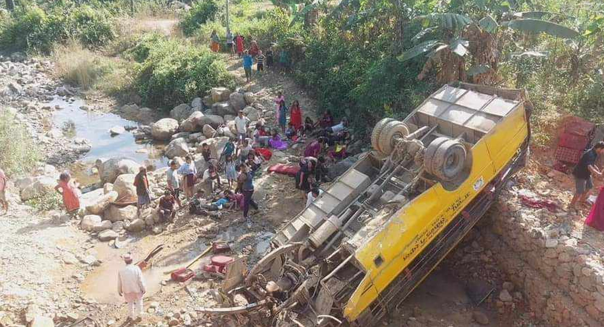 उदयपुरमा बस दुर्घटना हुँदा तीन जनाको मृत्यु, ३९ घाइते