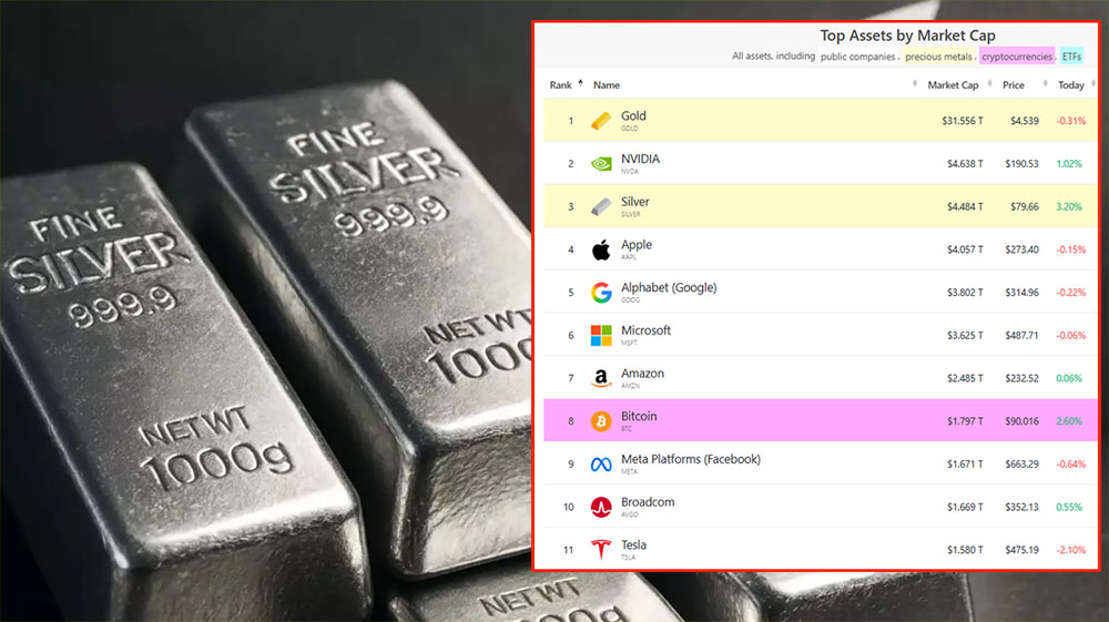 अल्फाबेट र एप्पललाई उछिन्दै चाँदी बन्यो विश्वको तेस्रो मुल्यवान सम्पत्ति