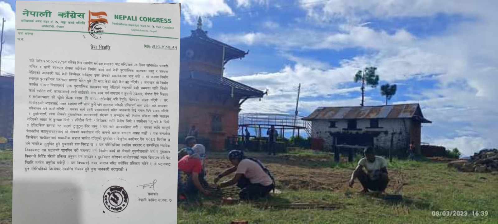 खांचिकोट ; ऐतिहासिक सम्पदा नष्ट भएको टुलुटुलु हेरेर बस्न नसक्ने काङ्रेस खांचिकोटको भनाइ ।