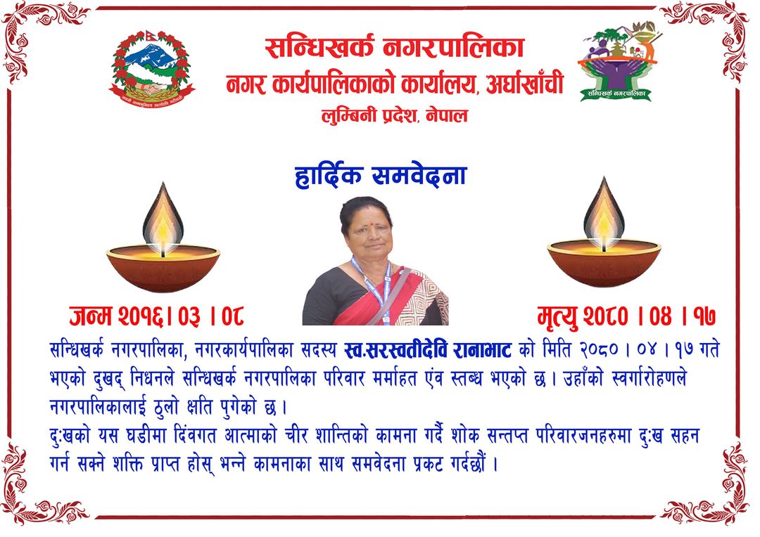 सन्धिखर्क ; कार्यपालिका सदस्यको निधनको शोकमा भोली १८ गते नगरमा शोक बिदा