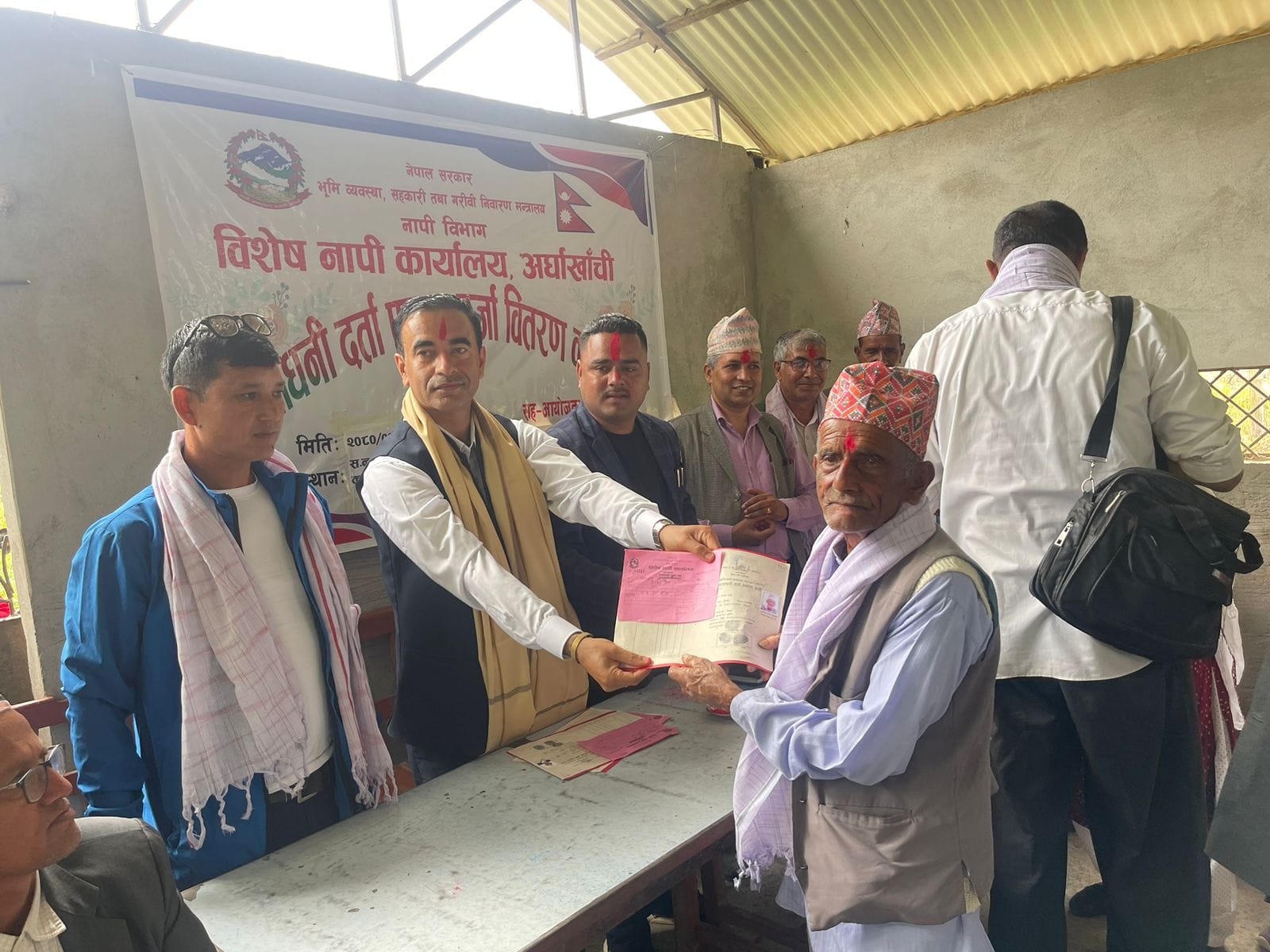 सन्धिखर्क : खाचिकोट ७ फुदवाङमा नया जग्गाधनी पुर्जा वितरण , भोली १२ गते खाची मैदानमा बितरण गरिने