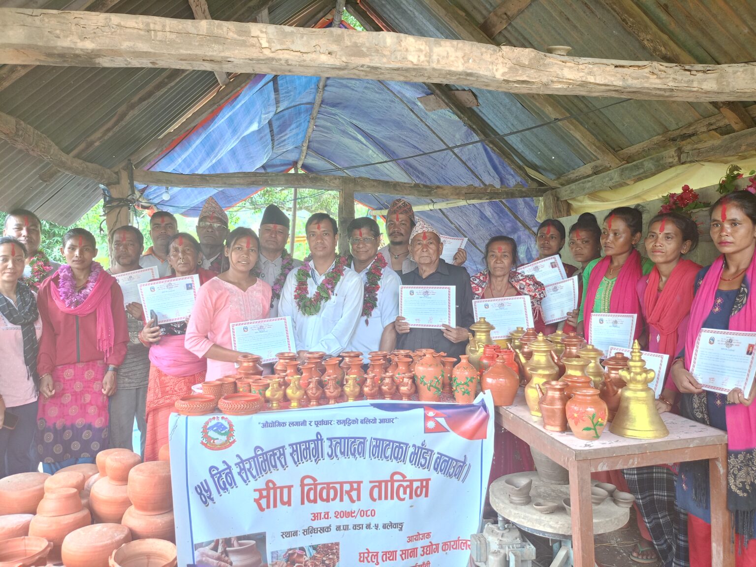 सन्धिखर्क ५ बलेबाङमा माटाका भाडा बनाउने तालिम सम्पन्न (तस्बिर सहित)