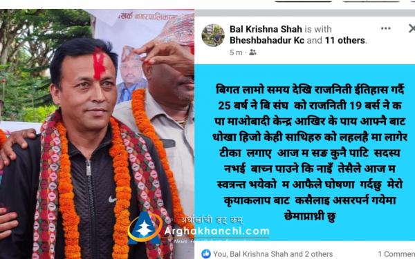 सन्धिखर्क – ५ का वार्ड अध्यक्ष राजेन्द्र भुसालले राजिनामा दिए