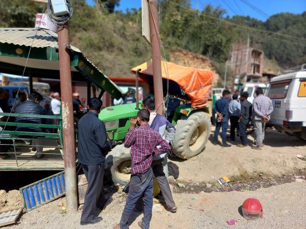 सन्धिखर्कमा रोकिराखेको ट्याक्टर आफै गुडेपछि क्षति (तस्बिरहरु)