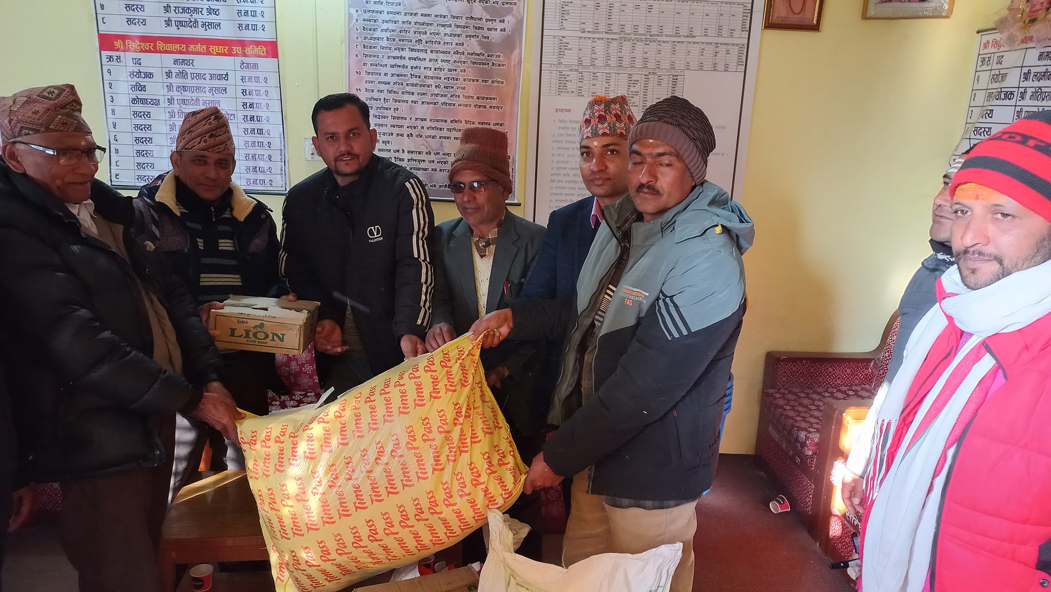 चुत्राबेसीको शिद्धेश्वर शिवालय मन्दिरका वटुकलाई सन्धिखर्क- १० बाट खाद्य सामाग्री सहयोग