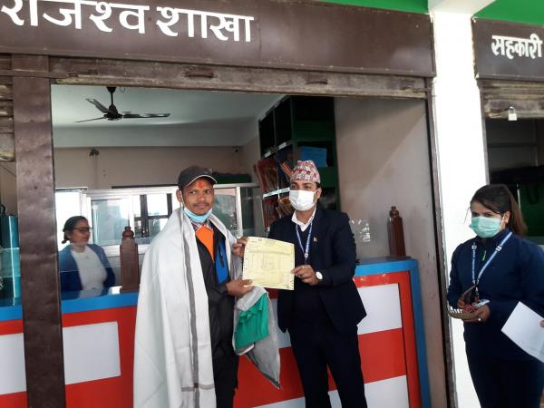सन्धिखर्क नगरपालिकाद्धारा कर दिवसको अवसरमा पहिलो करदातालाई सम्मानित