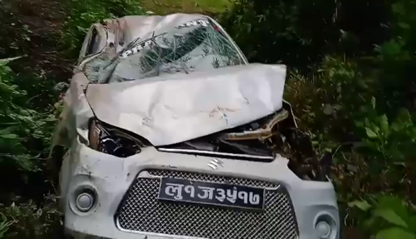 खाँचीकोटको भुजुङेमा ट्याक्सी दुर्घट्ना, दुई जना सामान्य घाईते (भिडियो, तस्बिर सहित)