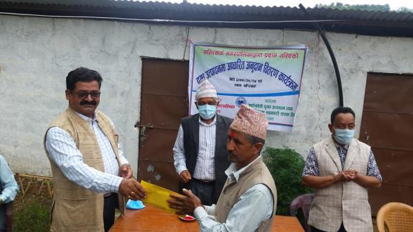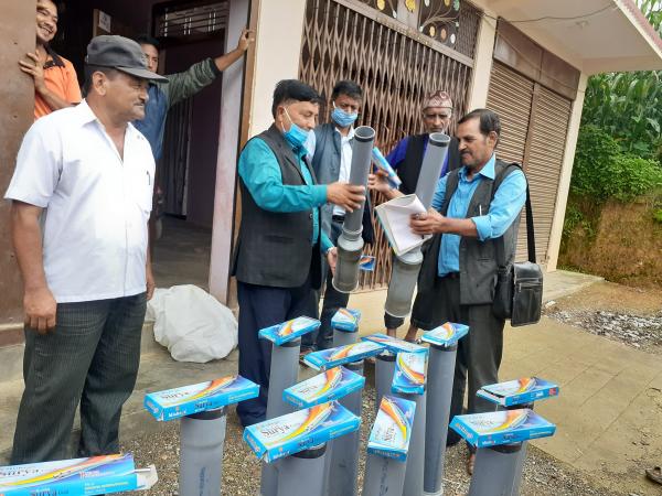 सन्धिखर्कको रोकाटोला छापडाँडाका किसानहरुलाई बादर धपाउने यन्त्र गन वितरण