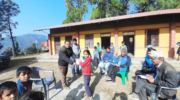 जुकेनामा रेडियो शितगंगाका अध्यक्ष शर्माद्धारा ह्यिल चियर र शाैक्षिक सामाग्री बितरण