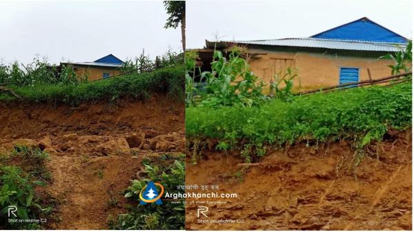 जुकेनाको साना ढुङग्रे गाउँमा वर्षाका कारण पहिरो जाँदा एक घरमा क्षति