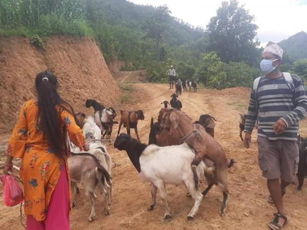 शितगंगामा सामाजिक दुरी कायम गरी खसीबोका बिक्री