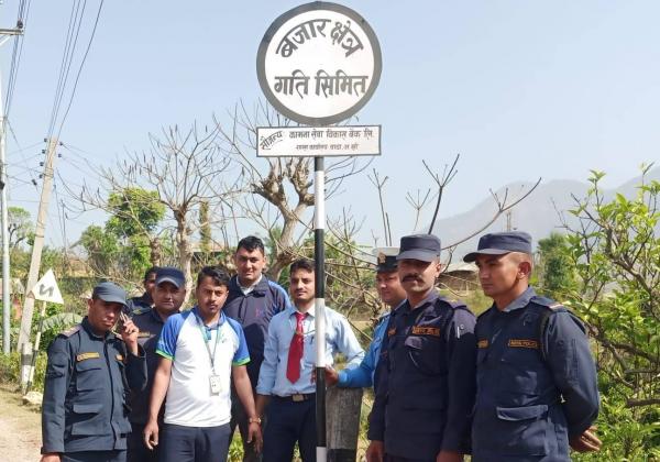 ठाडा दह र अमराई प्रवेश द्वारमा कामना सेवा बिकास बैंकले राख्यो ट्राफिक बोर्ड