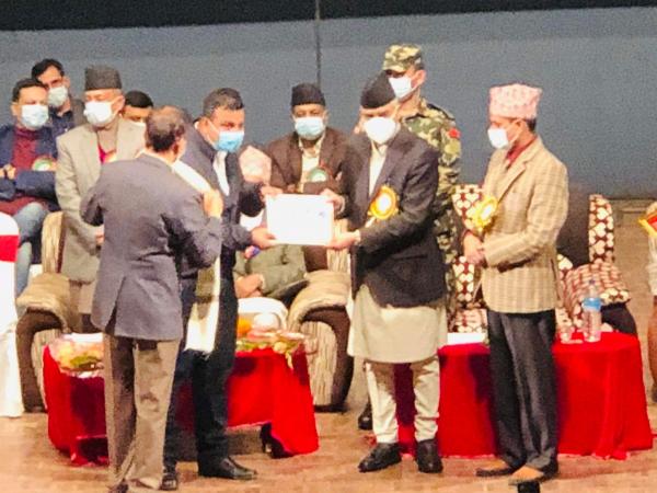 शितगंगा नगरपालिकाका प्रमुख प्रशासकीय अधिकृत झविन्द्र खनाल प्रधानमन्त्रीबाट सम्मानित