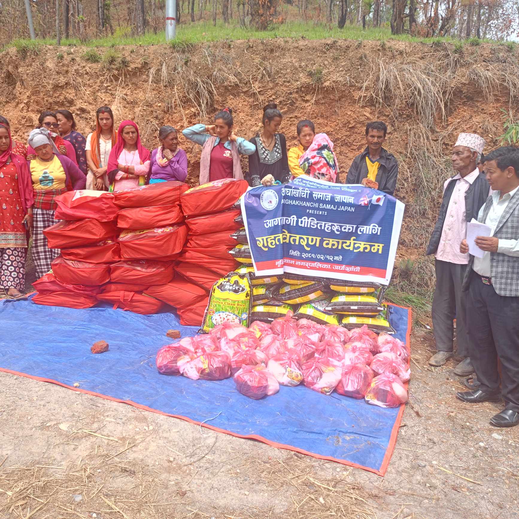 अर्घाखाँची समाज जापानको आर्थिक सहयोगमा भुमिकास्थानका आगलागी पिडित ३७ घरपरिवारलाई राहत सामाग्री प्रदान (तस्बिर सहित)
