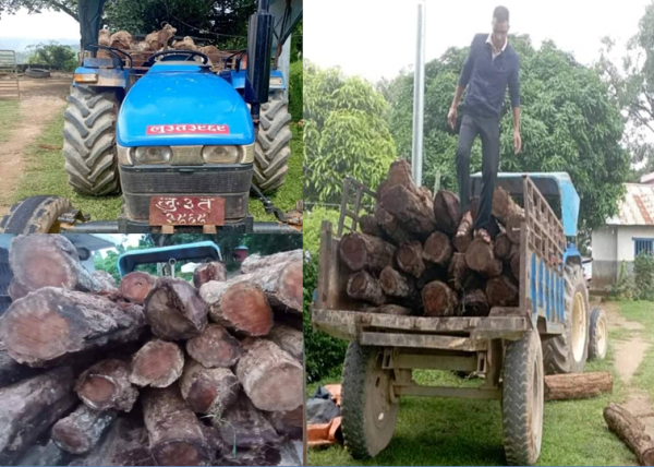 अवैध सालको काठ सहितको ट्याक्टर प्रहरी नियन्त्रणमा ।