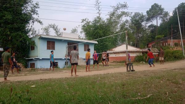 ढिकुरामा सडक मै भलीबल खेल्न बाध्य भए युवाहरु