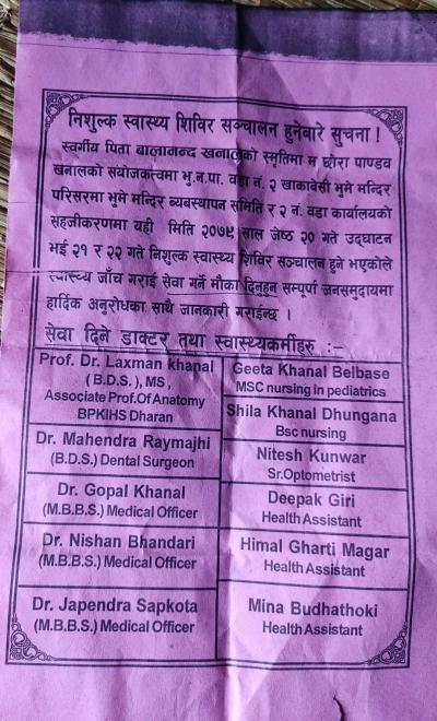 ढाकावाङ्गमा ३ दिने नि:शुल्क स्वास्थ शिविर सञ्चालन हुने