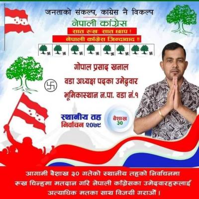 भुमिकास्थान नगपालिका -१ मा कांग्रेसका गाेपाल खनाल विजयी