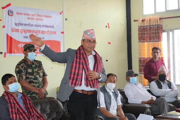 भुमिकास्थान नगरपालिकालाई सुरक्षित नागरिक आवास कार्यक्रमकाे लागि १ करोड २७ लाखको चेक हस्तान्तरण