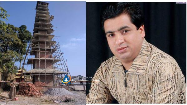 छत्रदेवका युबा हिरामणी न्यौपाने ब्यक्तिगत लगानीमा १५ तले आकाशदेबी मन्दिर बनाउदै