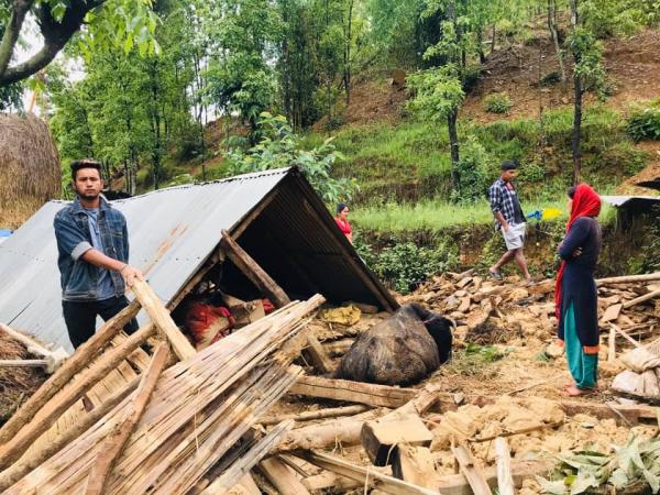 छत्रदेवको ठुलापोखरामा वर्षाका कारण गोठ भत्किदा लाखौंको क्षति, गाई भैसी मरे