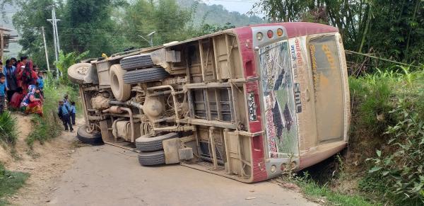 छत्रदेवको माथुरबेसीमा बस दुर्घट्ना