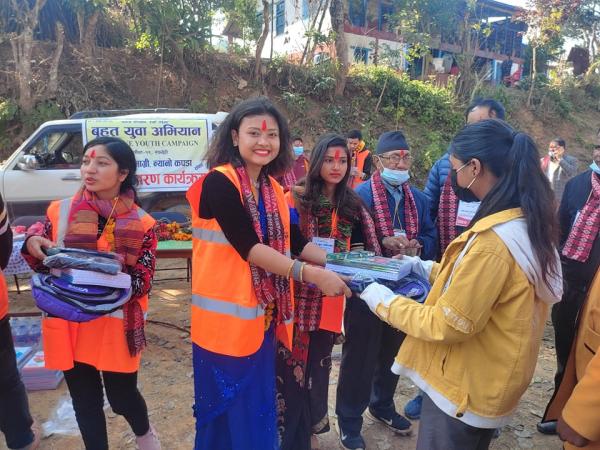 खिदिमका ६० जना विपन्न विद्यार्थीहरुलाई बृहत युवा अभियानद्वारा न्यानो कपडा तथा शैक्षिक सामाग्रीहरु वितरण