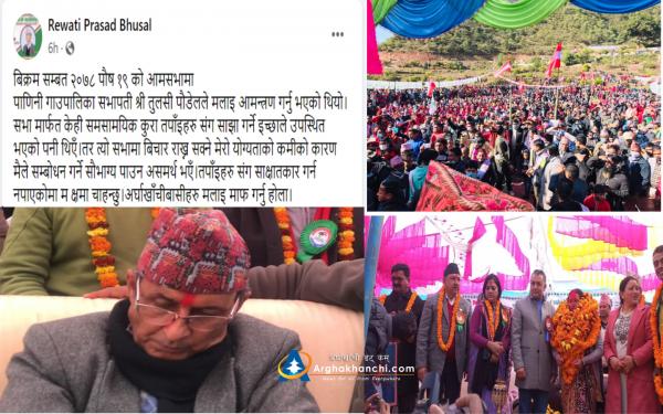 दुर्गाफाँटमा कांग्रेसको आमसभामा पुर्व मन्त्री रेवती प्रसाद भुसाललाई बोल्न बन्चित