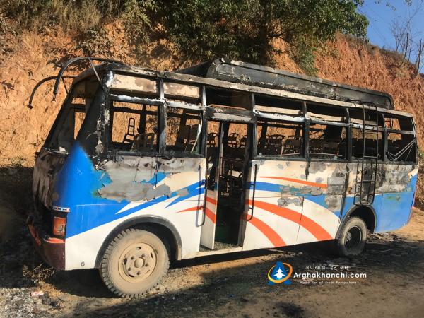 मैदानको वोहखोरमा विद्युत सर्ट हुँदा मिनीबस जलेर पुर्ण रुपमा क्षतिग्रस्त (फोटो सहित)