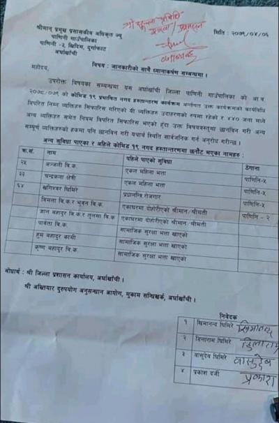 पाणिनीको स्थानीय सरकार चाडवाडको मुखमा सामाजिक सुरक्षा भत्ता लिएर गाँउटोलमा