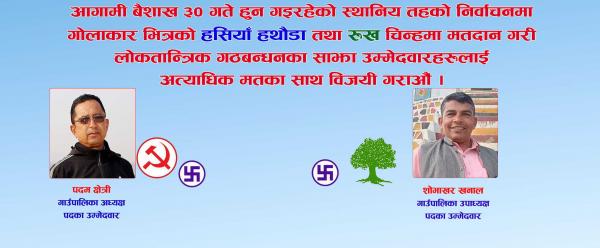 मालारानीको अध्यक्ष पदमा एमालेबाट दलबहादुर भट्टराई र उपाध्यक्षमा दीपा पोखरेलको उम्मेद्वारी
