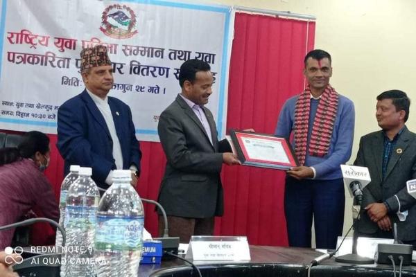 हंसपुरका खिम पन्थीलाई नेपाल सरकारबाट राष्ट्रिय युवा प्रतिभा सम्मान प्रदान