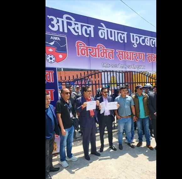 गणेश थापामाथी रोक लगाए पछि प्ले कार्ड बाेकेर प्रदर्शन