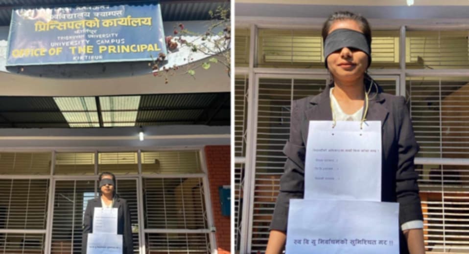 निर्वाचनको सुनिश्चितताको माग गर्दै स्वतन्त्र उम्मेदवार पदमा भुसालको त्रिवीमा निर्वाचन कार्यालय अगाडी धर्ना
