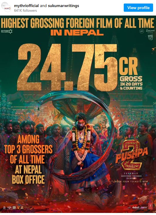 पुष्पाः २ ले नेपालमा कमायो २४.७५ करोड भारू, नेपालमा सबैभन्दा बढी कमाउने बिदेशी फिल्मको रेकर्ड